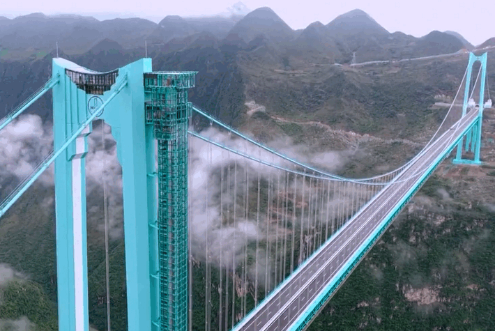 Die höchste Brücke der Welt ist in der südwestchinesischen Provinz Guizhou für den...
