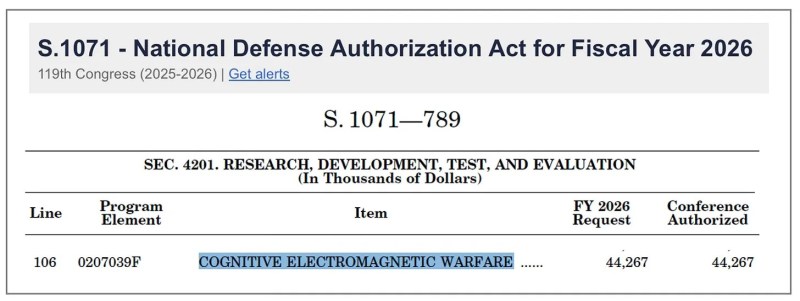 Doch jenseits der Schlagzeilen über Rekordausgaben verbirgt sich im National Defense Authorization Act (NDAA) 2026 ein bemerkenswerter Haushaltsposten: 44,2 Millionen US-Dollar für sogenannte „kognitive elektromagnetische Kriegsführung“, zugeordnet zur US-Luftwaffe.