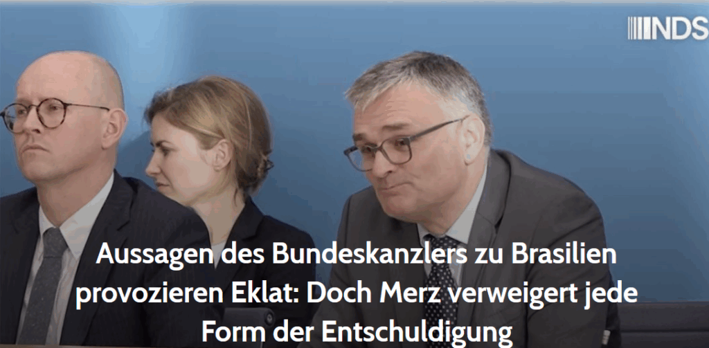 Es war, nicht ganz unironisch in diesem Kontext, der staatlich finanzierte deutsche Auslandssender Deutsche Welle, welcher die Aussagen von Merz in Berlin in Brasilien verbreitete, ganz dem offiziellen DW-Auftrag folgend, „Träger der auswärtigen Kulturpolitik der Bundesrepublik Deutschland“ zu sein …