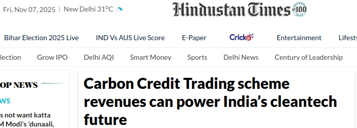 Quelle: https://www.hindustantimes.com/ht-insight/climate-change/carbon-credit-trading-scheme-revenues-can-power-india-s-cleantech-future-101760937908699.html