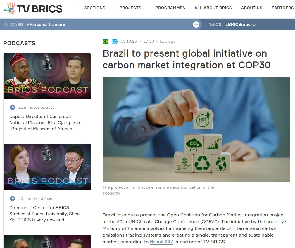 Quelle: https://tvbrics.com/en/news/brazil-to-present-global-initiative-on-carbon-market-integration-at-cop30/