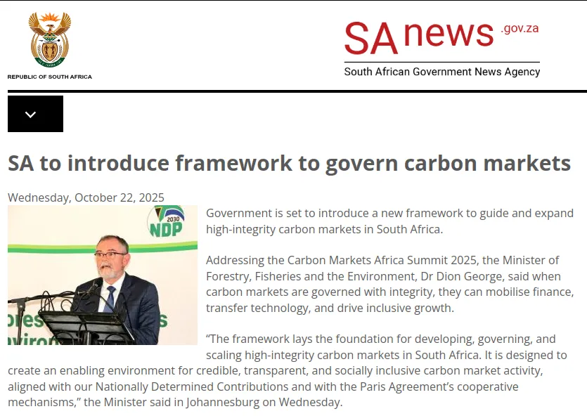 22. Oktober: Südafrika führt „hochintegrierte“ Kohlenstoffmärkte ein
