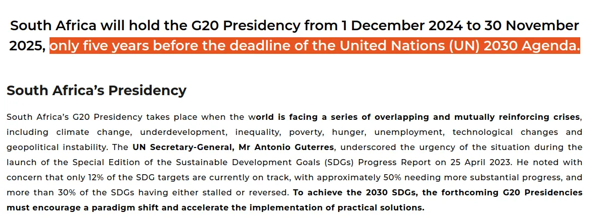 Am 22. November trifft sich die G20 im BRICS-Staat Südafrika, um über die größte Krise der Menschheit zu diskutieren: Die Nationen der Welt haben Schwierigkeiten, ihre UN-Ziele für nachhaltige Entwicklung zu erreichen, die bis 2030 umgesetzt werden sollen. Das sind nur noch fünf Jahre!