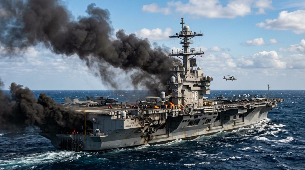 Es sind Berichte, die das US-Verteidigungsministerium am liebsten unter Verschluss halten würde. Auf dem absoluten Stolz der US-Marine, der USS Gerald R. Ford, herrscht das blanke Chaos. Ein gewaltiges Feuer hat weite Teile der Wohnquartiere zerstört. Hunderte US-Matrosen müssen mitten im Kriegseinsatz auf dem nackten Boden schlafen. Was uns die Behörden als “kleinen Unfall” verkaufen wollen, wirft eine brisante Frage auf: Wurde das Schiff in Wahrheit von einer iranischen Drohne oder Rakete getroffen?