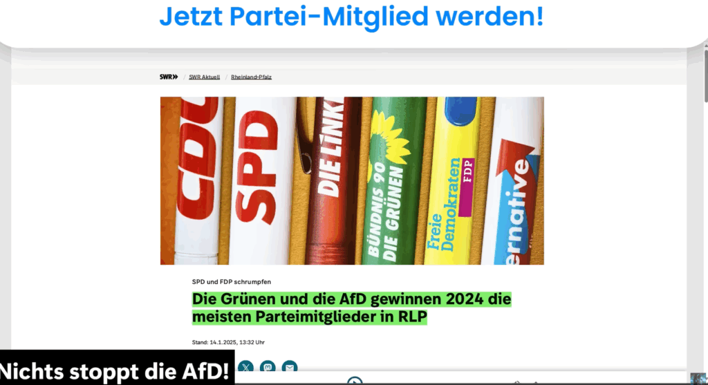 Allgemein Damit hätte niemand gerechnet! AfD überrascht alle! Uwe 18. Oktober 2025 Continue Reading Previous PUTINS KRIEG: Ukrainer könnten „zu Statisten degradiert werden“ Sorge vor Diktatfrieden wächst!Next Wie der Kult der Dummheit Intelligenz unerwünscht machte