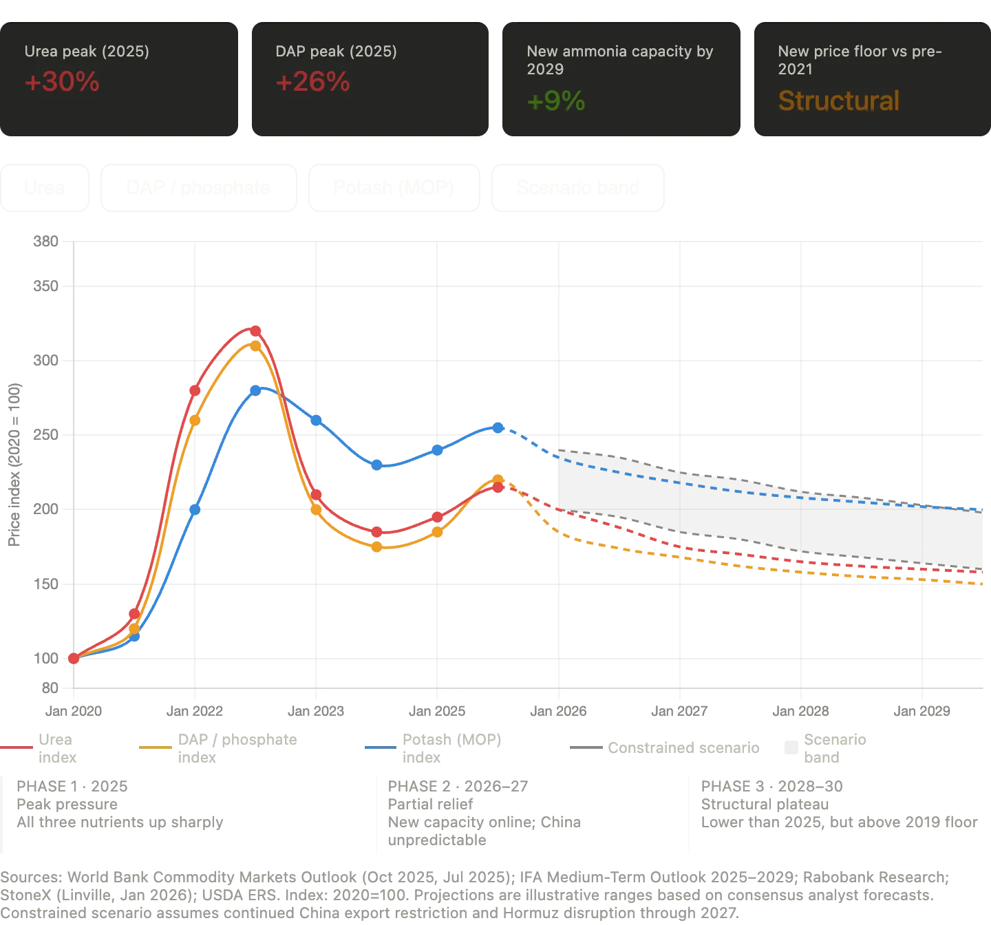 Was jedoch eindeutig ist, ist die Auswirkung. Der weltweit größte Düngemittelproduzent hat über mehrere Jahre hinweg systematisch die Exporte in verschiedenen Nährstoffkategorien an mehreren kritischen Punkten reduziert. Die kumulativen Auswirkungen auf die globalen landwirtschaftlichen Betriebsmittel sind messbar und gravierend.