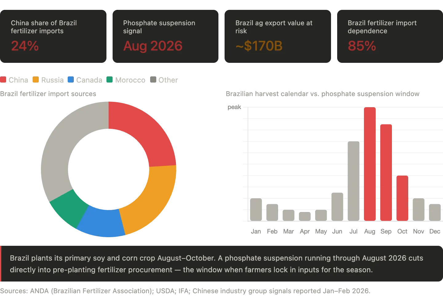 Brasilien ist einer der weltweit größten Agrarexporteure. China liefert mittlerweile 24 Prozent aller von Brasilien importierten Düngemittel. Die Aussicht auf eine Aussetzung der Phosphatexporte bis August 2026 – die chinesische Industrieverbände bereits signalisiert haben – könnte den brasilianischen Erntezyklus buchstäblich an der Wurzel destabilisieren.