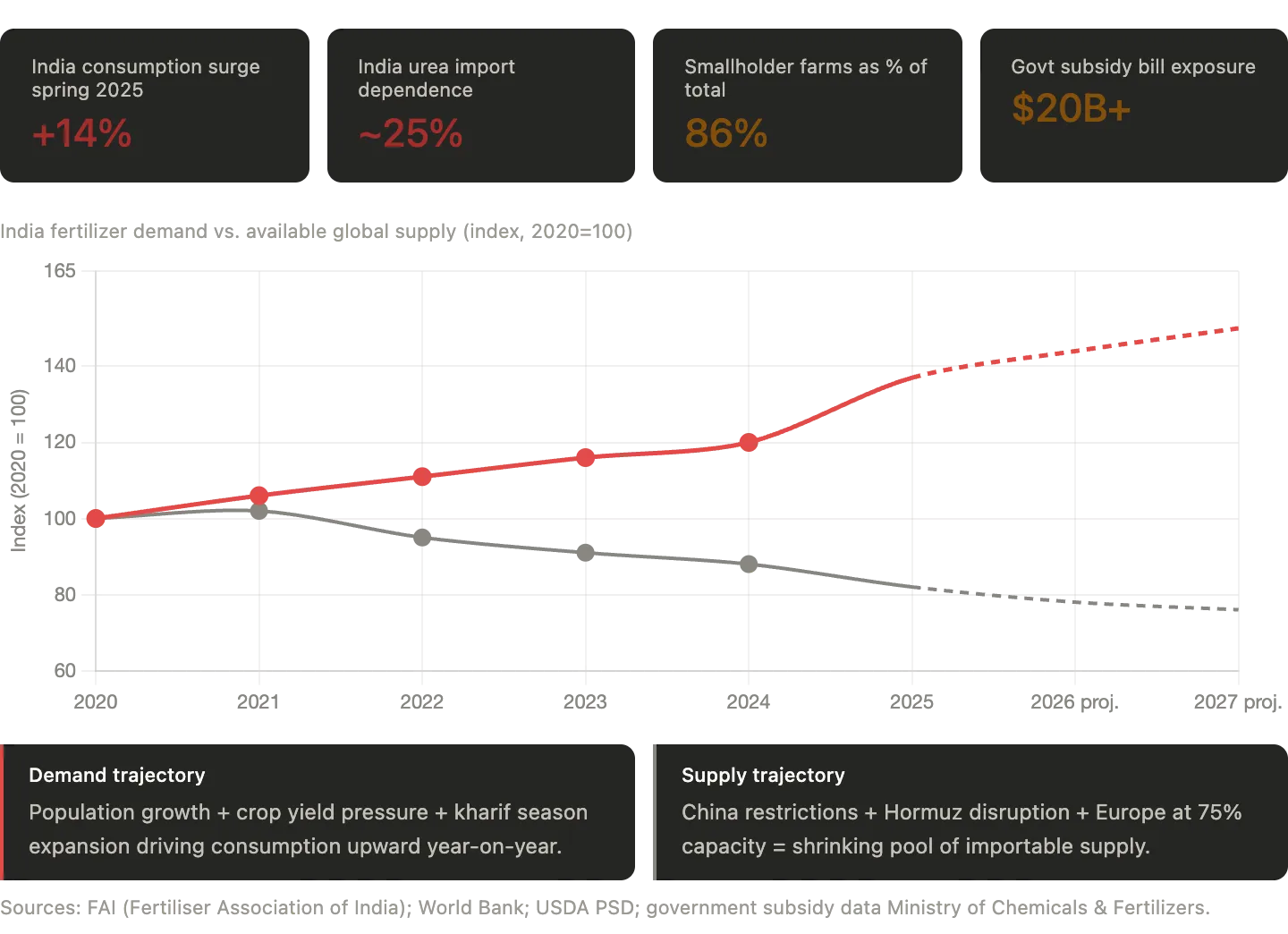 Indiens Düngemittelverbrauch stieg im Frühjahr 2025 um 14 Prozent. Die Nachfrage steigt gerade dann, wenn das Angebot schrumpft. Diese Rechnung geht nicht auf.