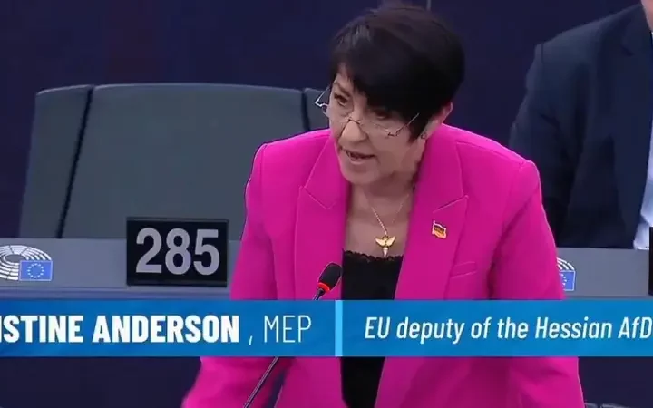 Während einer Debatte im Europäischen Parlament in Straßburg hat die Europaabgeordnete Christine Anderson...