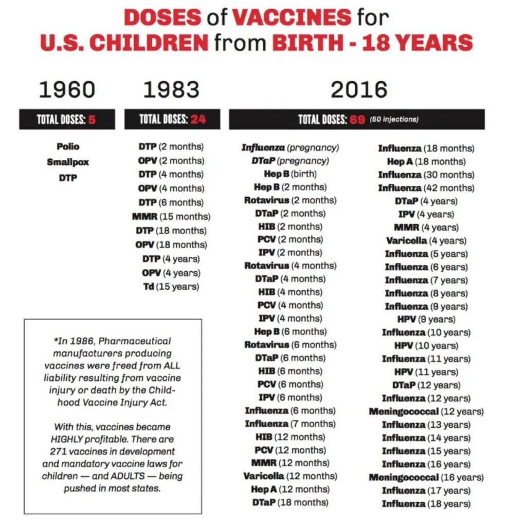 Es werden ständig neue Impfstoffe hinzugefügt – von 24 Dosen im Jahr 1983 auf unglaubliche 69 im Jahr 2016.