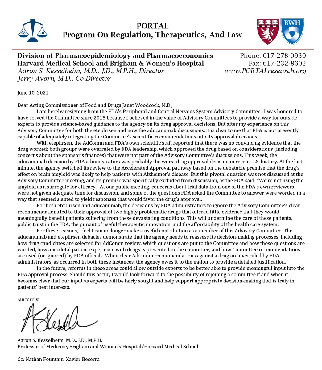 Aber die FDA genehmigte es trotzdem. Drei Berater traten aus Protest zurück und bezeichneten es als die schlechteste Entscheidung in der modernen Geschichte!