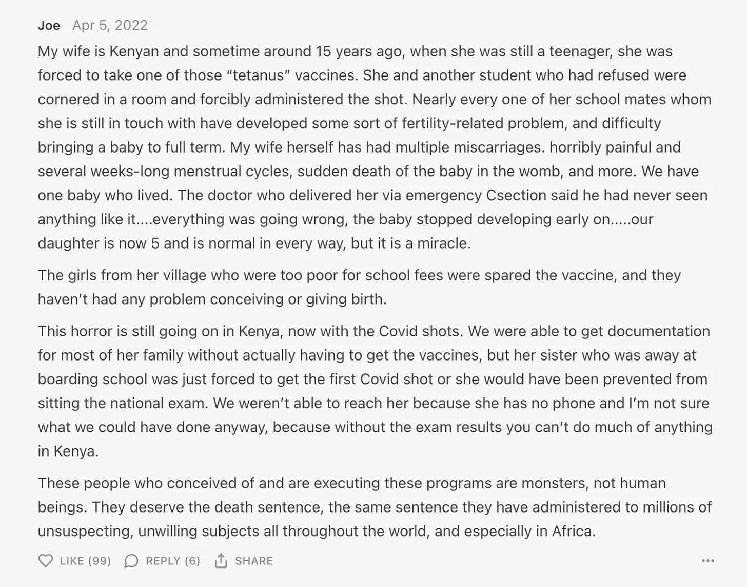 Globale Gesundheitsinstitutionen haben jahrzehntelang mit sterilisierenden Impfstoffen experimentiert – modifizierten Tetanusimpfungen, die in Entwicklungsländern eingesetzt wurden und stillschweigend Unfruchtbarkeit verursachten.