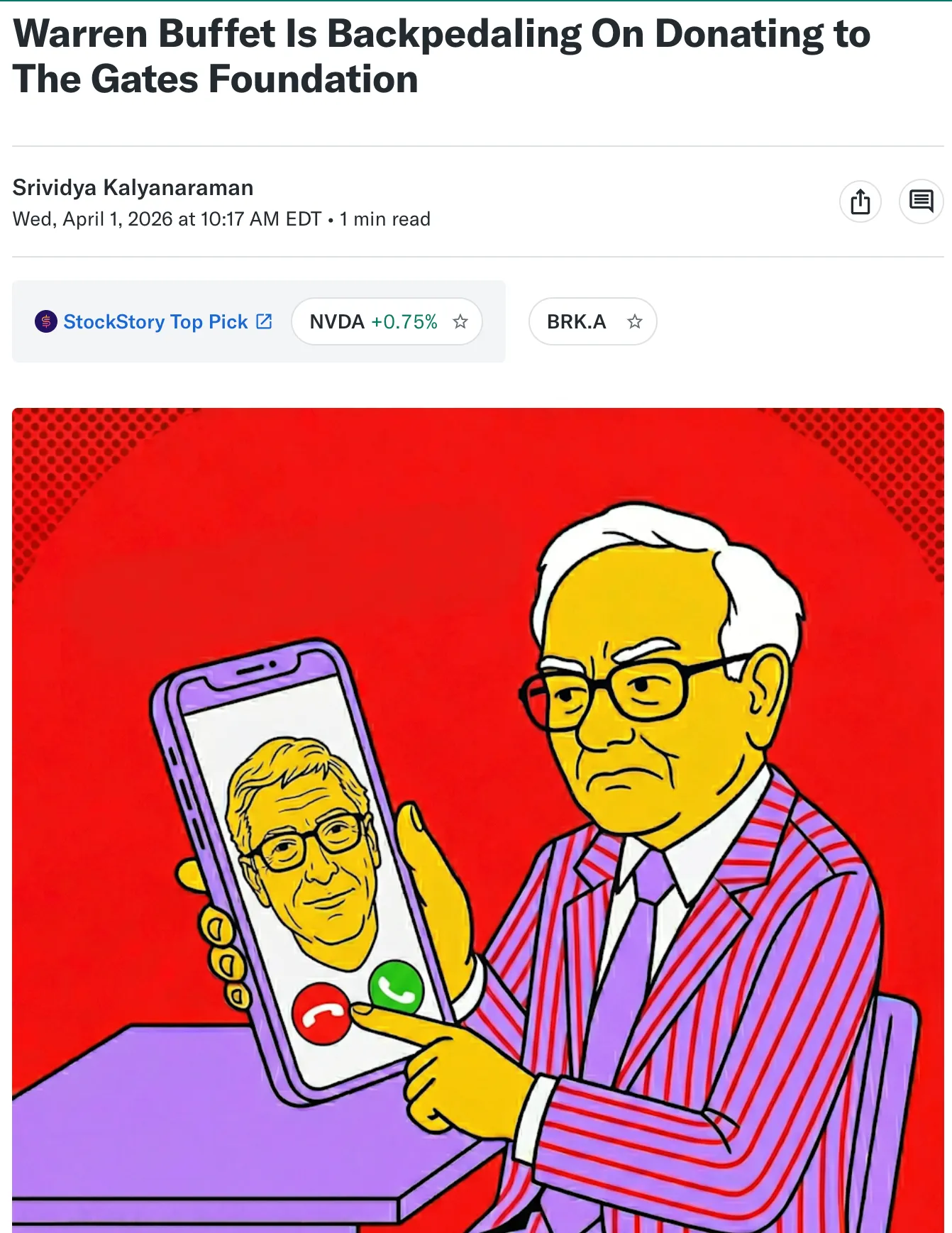 Buffett hält sich bedeckt. Warren Buffett erklärte gegenüber CNBC am 31. März, dass er seit der Veröffentlichung der Dokumente nicht mehr mit Gates gesprochen habe. „Ich erfahre Dinge, die ich nicht wusste“, sagte er. „Ich möchte lieber nicht unter Eid stehen.“ Er lehnte es ab, sich zur Fortsetzung seiner jährlichen Spenden in Milliardenhöhe an die Gates Foundation zu verpflichten – und setzte damit zum ersten Mal die Partnerschaft aus, die gemeinsam die Giving Pledge ins Leben gerufen hatte.