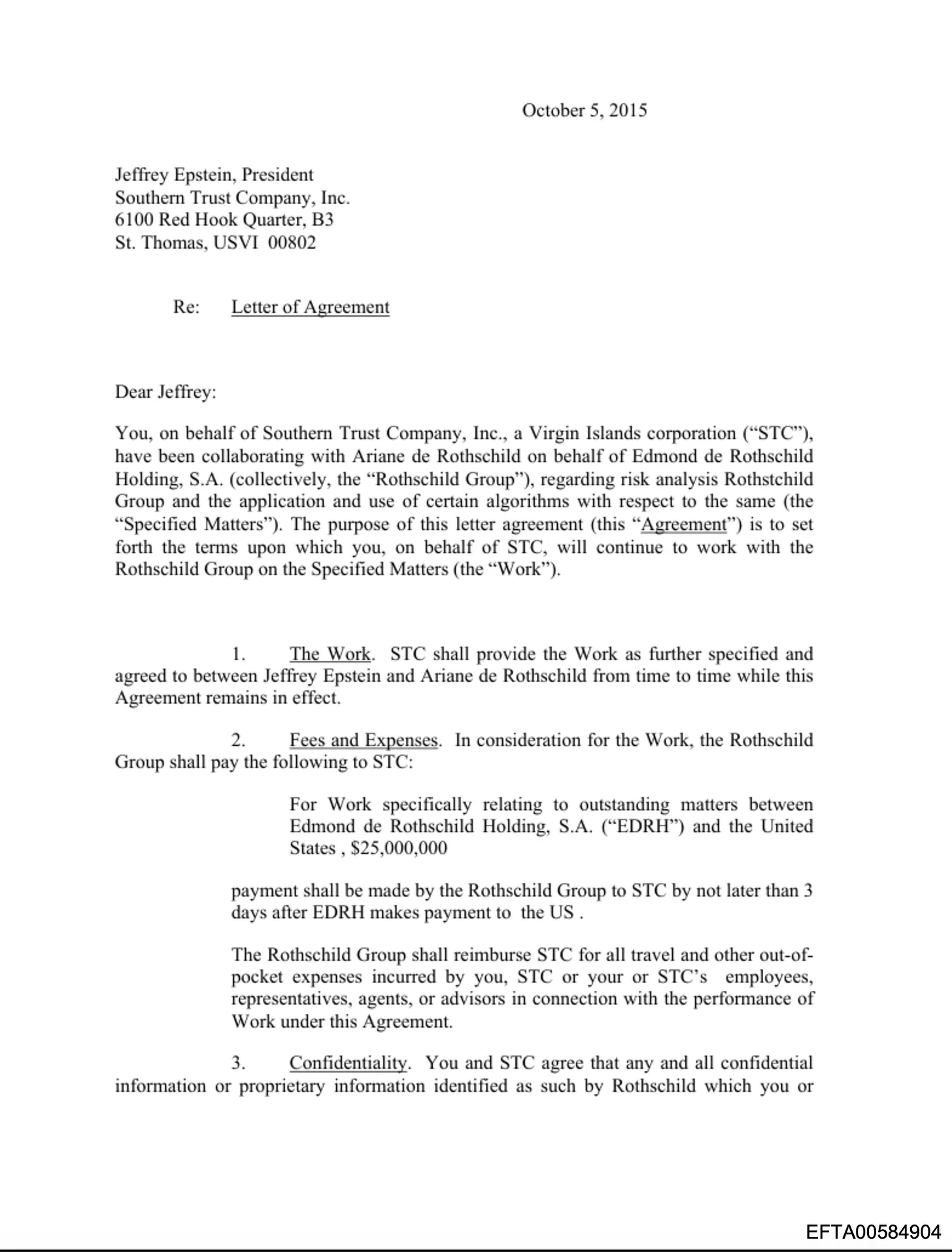 Die Finanzstruktur reichte über Gates hinaus. Eine Vereinbarung vom Oktober 2015 (EFTA00584904) dokumentiert einen Auftrag im Wert von 25 Millionen Dollar zwischen Epsteins Southern Trust Company und der Edmond de Rothschild Holding, S.A., der sich auf „offene Angelegenheiten“ im Zusammenhang mit der US-Regierung bezog. Kathy Ruemmler – ehemalige Rechtsberaterin von Präsident Obama im Weißen Haus – wurde von Epstein für dieses Engagement rekrutiert, beauftragte ihn als Berater auf Briefpapier von Latham & Watkins (EFTA00582812) und flog mit Epstein und Ariane de Rothschild nach Genf (EFTA00644548). Im Dezember 2015 schrieb Rothschild an Epstein: „Ja, herzlichen Glückwunsch und ein riesiges Dankeschön!! Ich bin erleichtert, dass es geklärt und vorbei ist.“ (EFTA00669908)