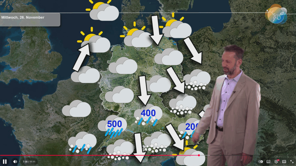 Allgemein Heute im Südosten Schnee, dann milder & nass – bis mind. 2. Advent. Wetterbericht 26.11.-05.12.2025. Uwe 26. November 2025 Continue Reading Previous EU-Chatkontrolle soll „ohne Diskussion“ durchgewinkt werdenNext Aldi, Lidl, Rewe & Co.: Aufgedeckt – In diesen Lebensmitteln sind Insekten!