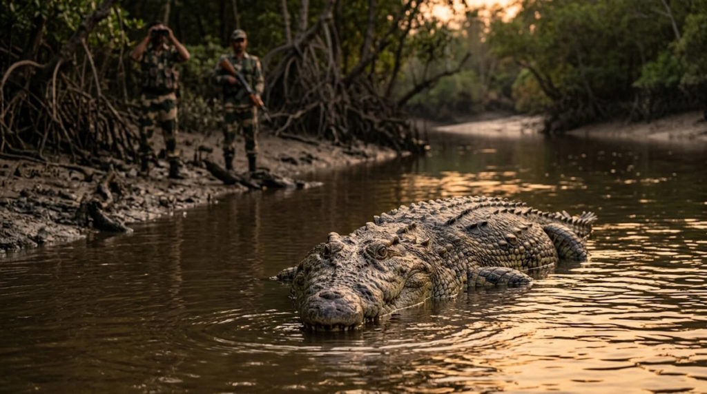 Die Grenze zwischen Indien und Bangladesch ist ein Albtraum für jeden Grenzschützer: Über 4000 Kilometer lang, durchzogen von 54 Flüssen, gefährlichen Sümpfen und Mangrovenwäldern. Etwa 850 Kilometer sind völlig ungesichert. Herkömmliche Grenzanlagen und feste Zäune können in dem weichen Schlamm und Überschwemmungsgebiet nicht errichtet werden. Genau hier, wo selbst Hightech-Drohnen, Nachtsichtgeräte und Spürhunde an ihre Grenzen stoßen, sollen nun die Krokodile und Giftschlangen als lebende Grenzwächter im Wasser lauern.