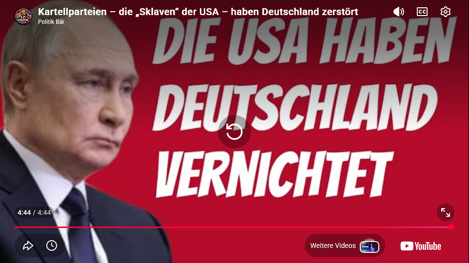 Allgemein Kartellparteien – die „Sklaven“ der USA – haben Deutschland zerstört Uwe 13. April 2026 1 min read Kartellparteien – die „Sklaven“ der USA – haben Deutschland zerstört Continue Reading Previous Lymphfluss aktivieren am Morgen – 15 Minuten nach Chinesischer Medizin