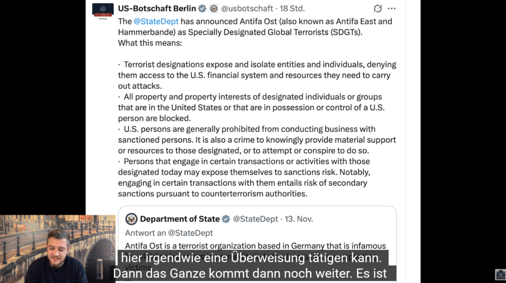 Allgemein Kein iPhone, kein PayPal, kein Windows – US-Botschaft erklärt Sanktionen gegen Antifa-Unterstützer! Uwe 15. November 2025 Continue Reading Previous DEUTSCHLAND: „Kann nicht sein!“ Staatsrechtler Böhme-Neßler zerlegt Angstpolitik der Altparteien!Next Wurzelkanalbehandlung ehrlich erklärt: Retten oder Raus?