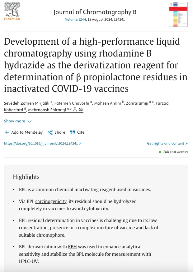 Eine Veröffentlichung vom Oktober 2025 in der Fachzeitschrift Analytical Methods, herausgegeben von der britischen Royal Society of Chemistry, bestätigt, dass selbst Restmengen von BPL in Impfstoffampullen „inakzeptabel“ sind.