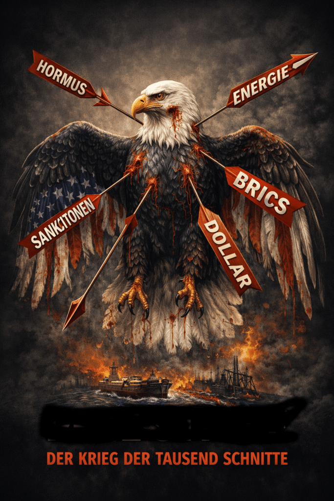 Der brasilianische Analyst Pepe Escobar beschreibt die iranische Militärstrategie als „Mosaik-Verteidigung“. In ihrer Wirkung lässt sie sich jedoch auch als ein Krieg der tausend Schnitte verstehen: eine langfristige Strategie, die darauf abzielt, das amerikanische Imperium und das gesamte westliche System nicht durch einen einzelnen militärischen Schlag zu besiegen, sondern es langsam wirtschaftlich, politisch und finanziell auszubluten.