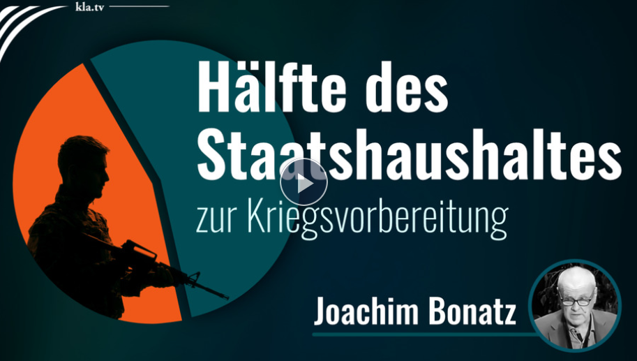 In Deutschland betrug das BIP [Bruttoinlandsprodukt] 2024 4,31 Billionen Euro. 5 Prozent davon sind 215 Milliarden Euro, zu denen sich Deutschland verpflichtet hat, innerhalb eines einzigen Jahres für Kriegsrüstung auszugeben. Jedes Jahr! Wie groß war 2024 der Staatshaushalt Deutschlands, aus dem das zu begleichen ist? Der Staatshaushalt betrug 2024 476,8 Milliarden Euro. Der Staatshaushalt 2025 wird aktuell beschlossen. Dieser ist nicht ausgeglichen und durch hohe Schuldenfinanzierung gekennzeichnet.