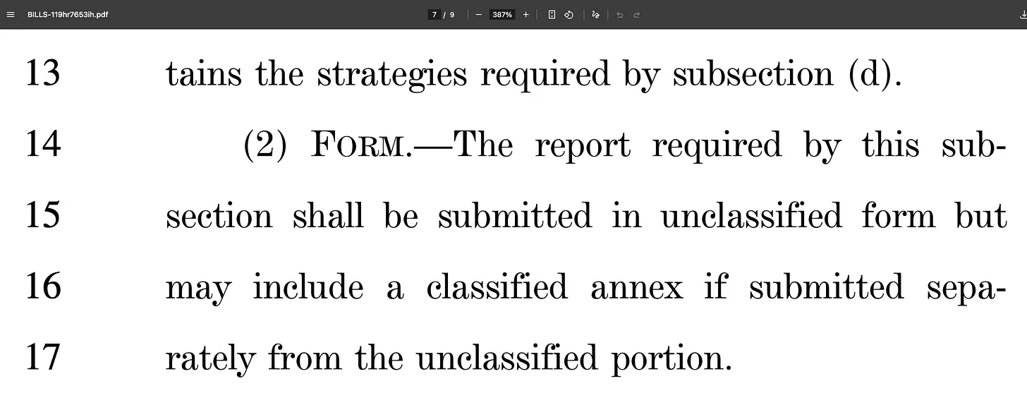 H.R. 7653 ermächtigt die NATO zur „Erforschung, Entwicklung und zum Einsatz von Biotechnologie“, legt internationale Kontrollen für Dual-Use-Systeme fest, die laut Gesetzentwurf den Einsatz von Biowaffen ermöglichen könnten, und erlaubt Geheimhaltung.