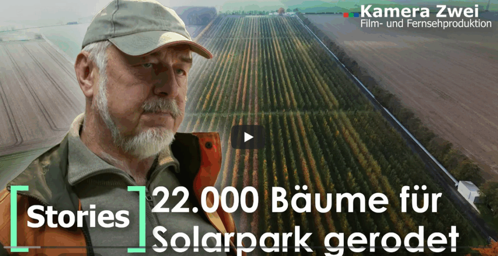 Umweltschutz paradox: Landwirt Klaus H. muss 22.000 Apfelbäume roden, weil die L. Universität H. ihm den Vertrag unerwartet nicht verlängert und stattdessen einen Solarpark errichten will. „Das tut weh“, hat der 67-jährige Bauer die Bäume 15 Jahre lang per Hand hochgezogen. In Ihrer schriftlichen Stellungnahme erklärt die L. Universität auf dem Gelände eine „Solar Siedlung“ entwickeln zu wollen: „Mit Schließung des Instituts für Gartenbau […] wird die Fläche […] in dieser Form an der Universität nicht mehr benötigt und durch die LUH einer sinnvollen nachhaltigen Nutzung zugeführt.“ PV-Anlagen sind für die Umwelt offenbar besser als Bäume.