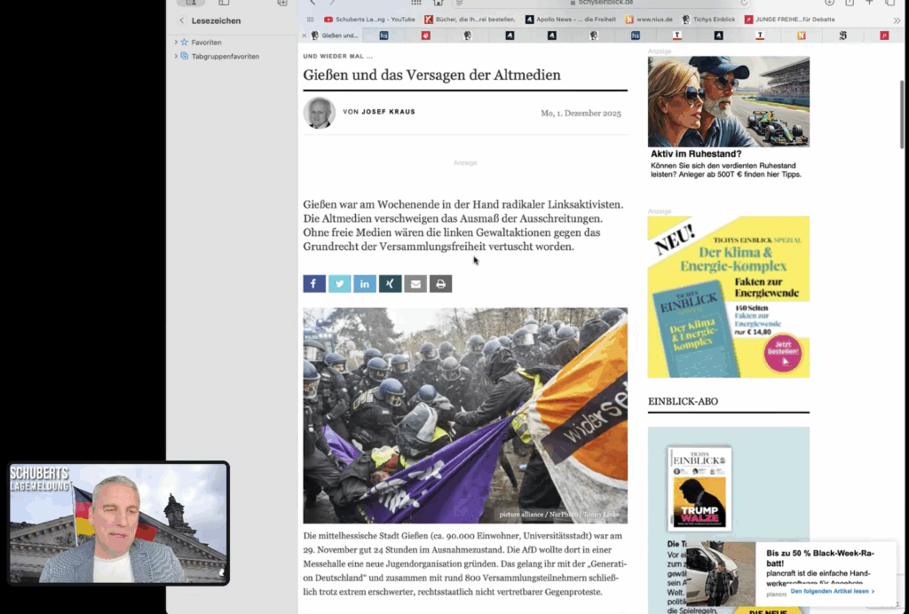 Allgemein Schock-Interna aus Polizeikreisen💥ARD&ZDF von Antifa unterwandert💥Schwere Vorwürfe gegenLinksextreme Uwe 1. Dezember 2025 Continue Reading Previous Jörges rechnet mit Merz ab und SPD zerlegt sich weiter selbst❗️Next Die Teuerungsgewinner – Wer jetzt reich wird!