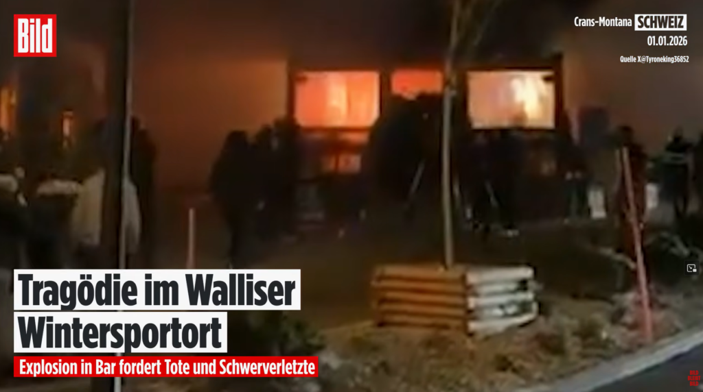 Allgemein SILVESTER-INFERNO in der Schweiz: Mehrere Tote bei Explosion in Skiort Crans-Montana Uwe 1. Januar 2026 Continue Reading Previous NIEDERLANDE: Ein letztes Mal „Böllern“! Niederlande zieht ab sofort Böllerverbot durch!Next “Eine Kugel Eis”? 29,5 Milliarden Euro Energiewende-Subventionen allein 2026!