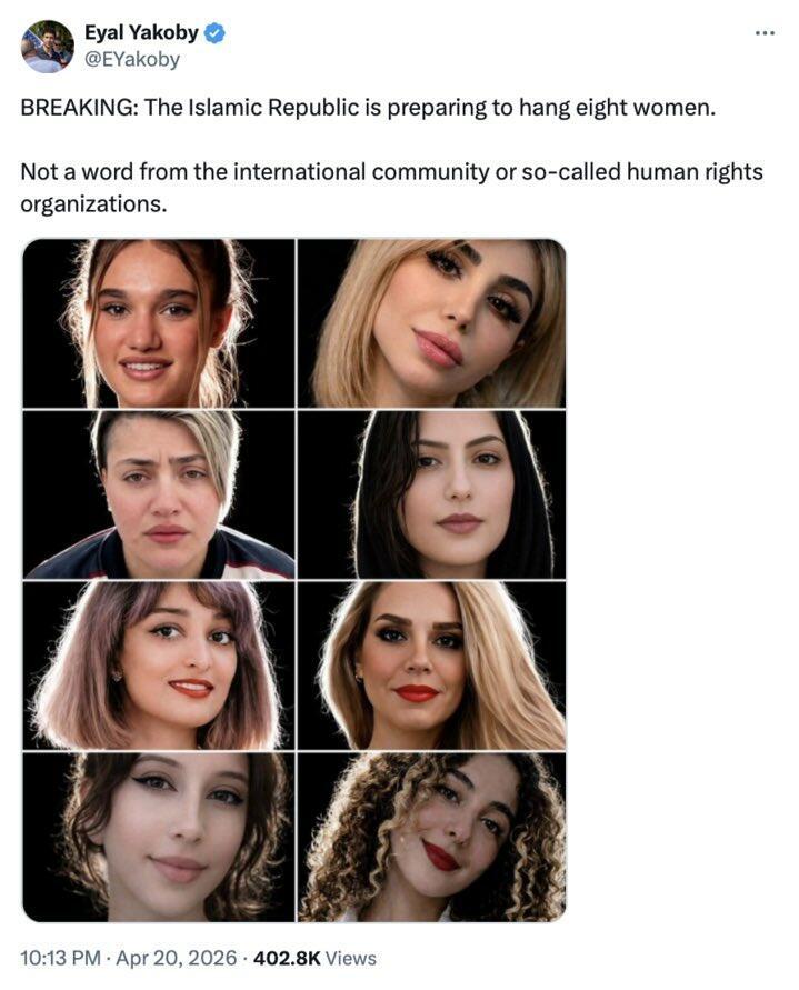 Präsident Trump hat plötzlich wieder das Argument der „humanitären Hilfe“ oder des „Schutzes der Demonstranten“ ins Feld geführt. Er hat soeben auf Truth Social die folgenden Worte geschrieben und dabei das untenstehende Bild von acht iranischen Frauen geteilt, die angeblich in der Todeszelle sitzen: