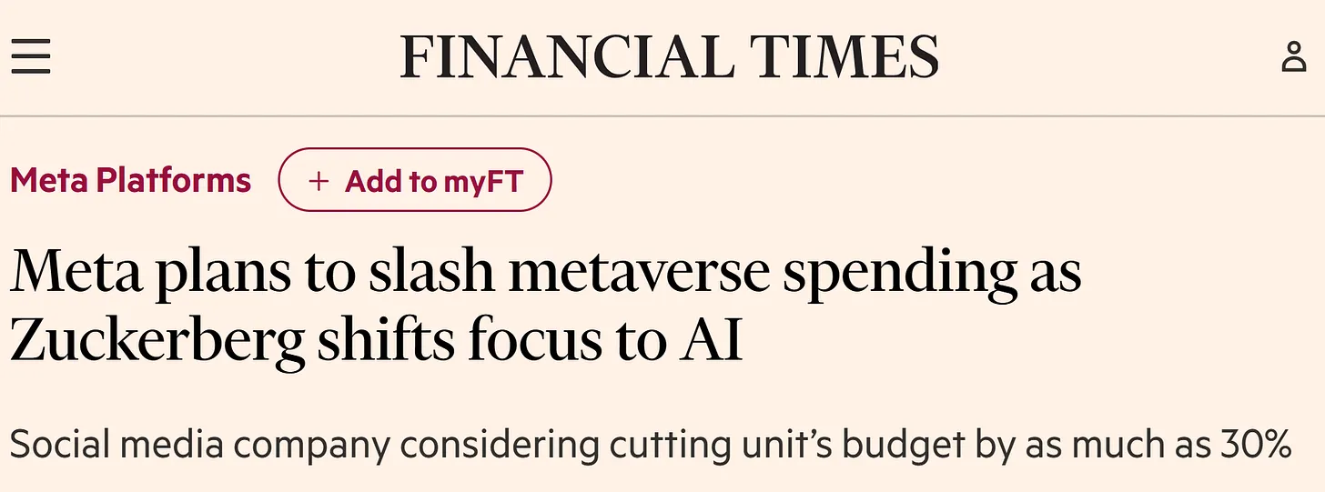 Erst kürzlich hat Mark Zuckerberg von Meta endlich den Stecker gezogen und das Metaversum, dieses völlig peinliche und gescheiterte Projekt, beendet. Es war lächerlich dumm, niemand wollte es (aus gutem Grund), aber das bedeutet, dass Investoren Milliarden und Abermilliarden Dollar verloren haben.