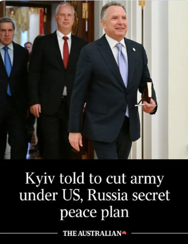 Ok. Der Plan zur Beendigung des Krieges in der Ukraine stammt nicht von Trump… Er wurde Berichten zufolge von Trumps Mann, Steve Witkoff, ausgearbeitet. Die wichtigsten territorialen Bestimmungen in Witkoffs vorgeschlagenem Friedensplan für die Ukraine sehen in erster Linie erhebliche Zugeständnisse der Ukraine an Russland vor.