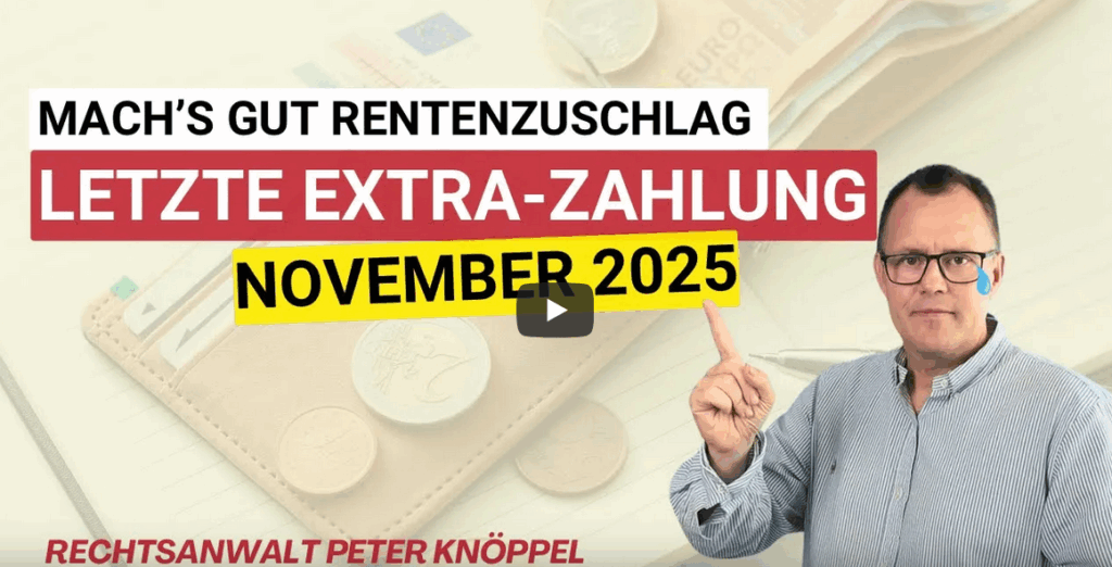 Letztes Mal Extra-Geld! Im November 2025 fließt der Rentenzuschlag zum letzten Mal separat – danach ändert sich alles. Der Rentenzuschlag wird unwiderruflich zum letzten Mal im November 2025 als Extra-Zahlung ausgezahlt. Ab Dezember 2025 gilt die neue Regelung: Der Zuschlag wird direkt in die monatliche Rente integriert – und ist dann auch beitragspflichtig für Kranken- und Pflegeversicherung. Drei Millionen Rentnerinnen und Rentner sind betroffen. Die Deutsche Rentenversicherung versendet bereits neue Bescheide.