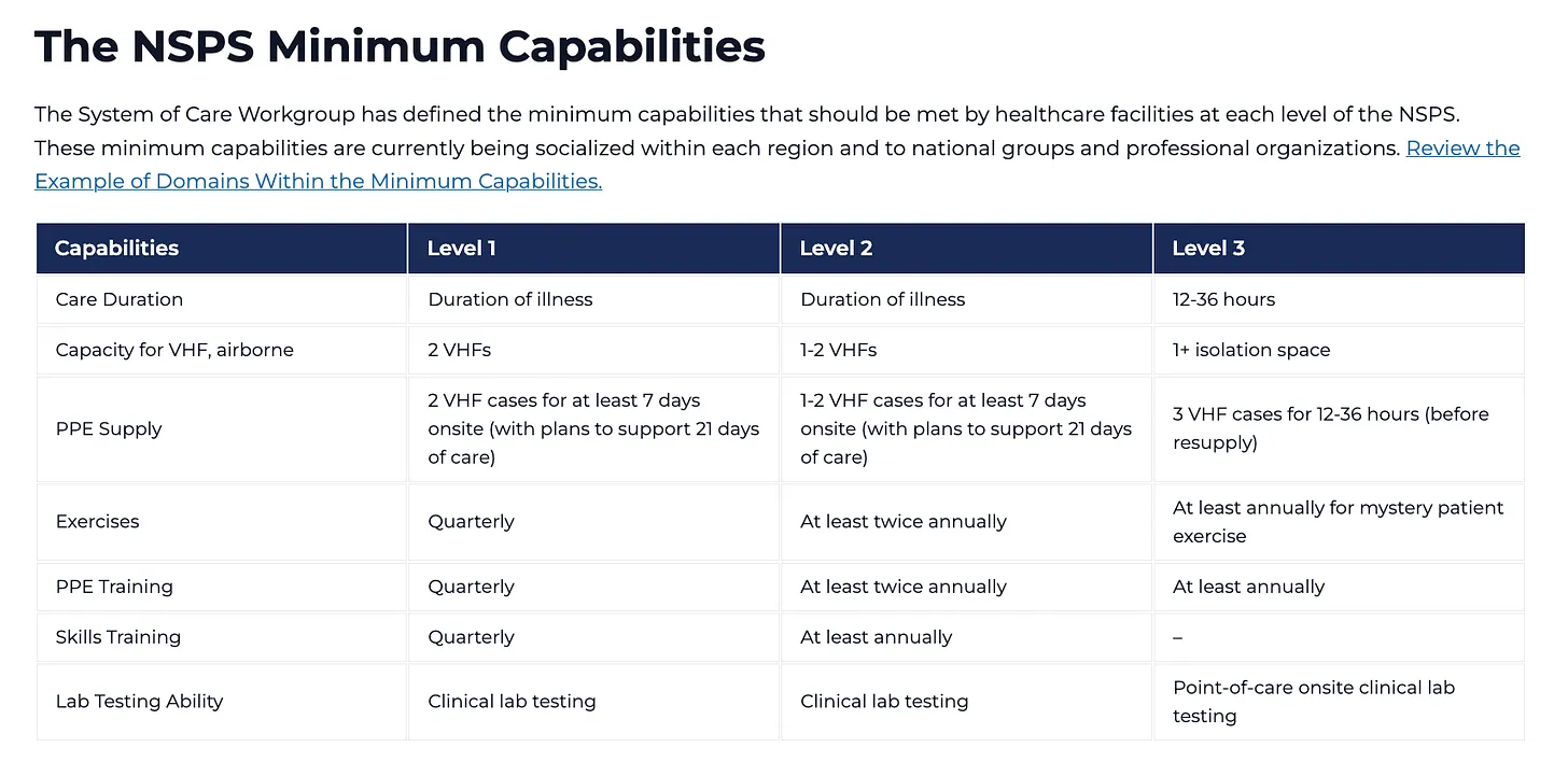 Die Ausschreibung stellt fest, dass die Erweiterung „die nationale Kapazität zur Bewältigung von Ausbrüchen und die geografische Reichweite für die Behandlung von HCIDs erheblich verbessert“ und so etwas wie eine bundesstaatlich finanzierte Containment-Kapazität im gesamten US-Krankenhausnetzwerk verankert.