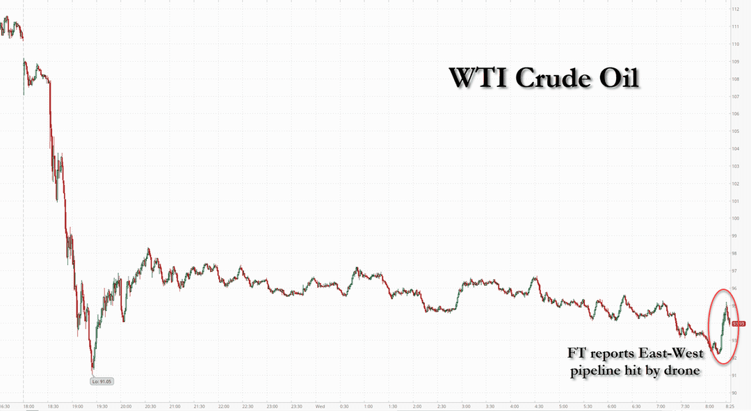 Eine gewaltige und nicht gerade „waffenstillstandsfreundliche“ Entwicklung in Saudi-Arabien, laut FT (gerade als Hegseth sprach): „Eine Pumpstation wurde um 13 Uhr Ortszeit getroffen, sagten die Informanten gegenüber der FT. Der Angriff wurde von einer Drohne durchgeführt und der Schaden wurde gerade begutachtet, teilte einer der Informanten der FT Saudi Aramco mit, dem Eigentümer und Betreiber der Pipeline.“ Die FT fährt fort: „Die Informanten sagten, eine Pumpstation – eine von mehreren entlang der 1.200 km langen Pipeline, die seit der fast vollständigen Sperrung der Schifffahrt durch die Straße von Hormus zu einer wirtschaftlichen Lebensader für das Königreich geworden ist – sei am Mittwoch gegen 13 Uhr Ortszeit getroffen worden.“