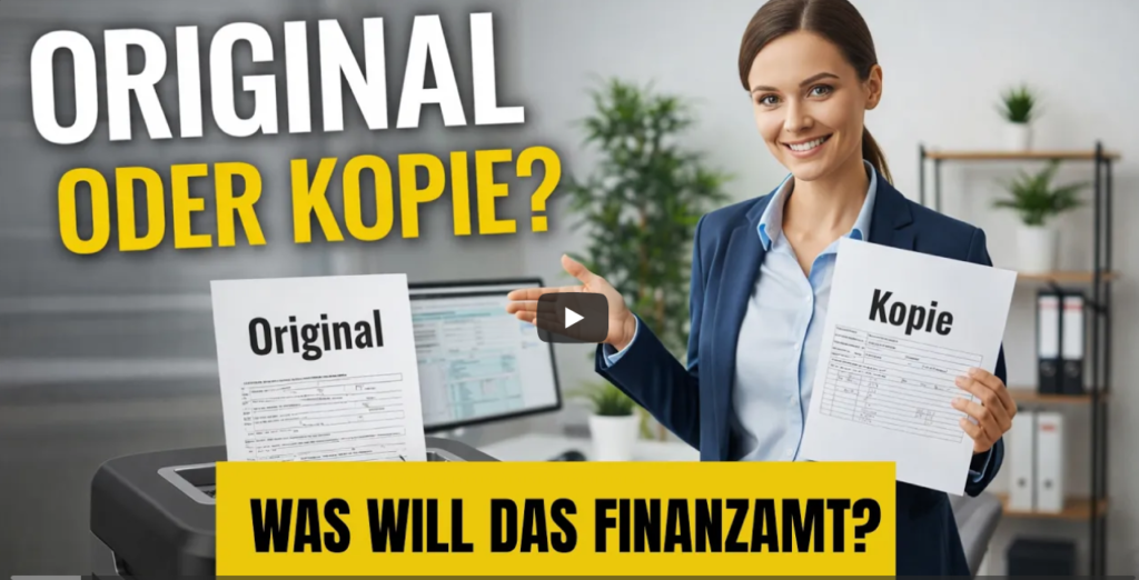 Müssen Belege im Original ans Finanzamt oder reicht eine Kopie? In diesem Video erfahren Sie, warum das Einsenden von Originalen sogar gefährlich sein kann und wie Sie Ihre Nachweise 2026 sicher und digital übermitteln. Viele Steuerzahler wissen nicht, dass das Finanzamt Papierbelege oft scannt und danach vernichtet.