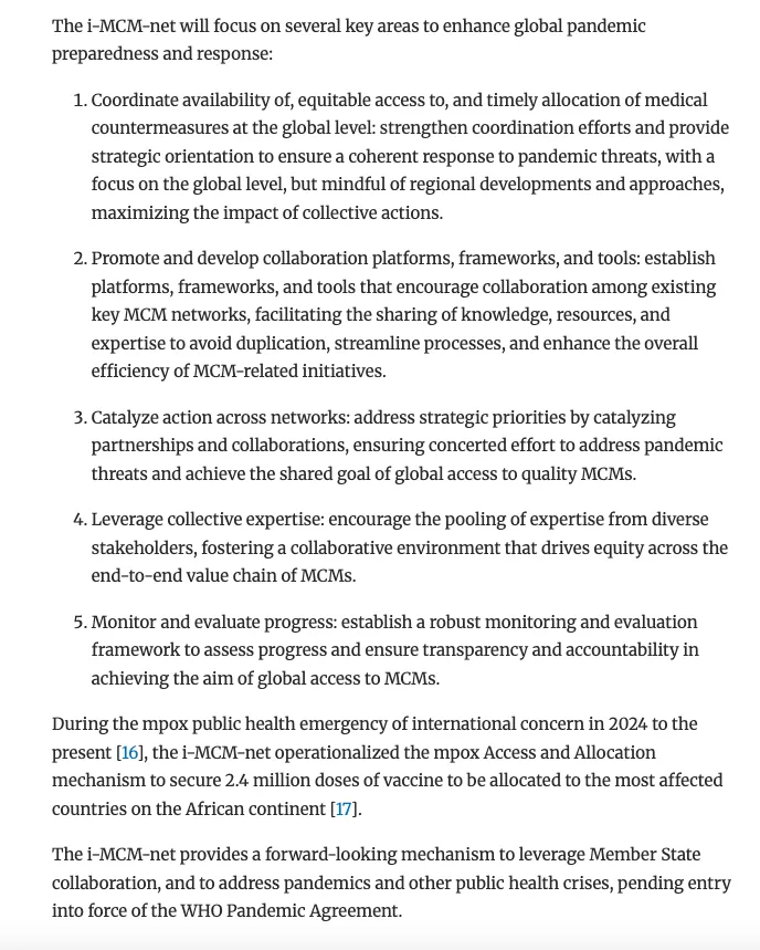 Das WHO-Papier weist auch darauf hin, dass die Organisation das i-MCM-Netzwerk aktiviert, bevor das bevorstehende Pandemieabkommen in Kraft tritt:
